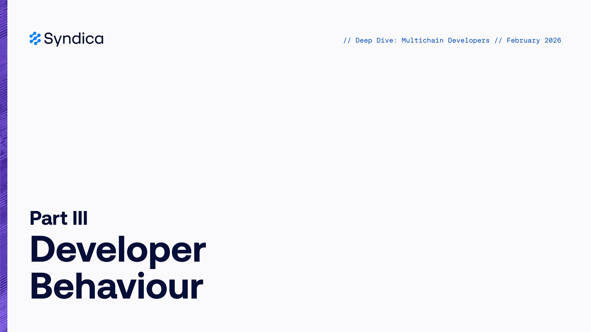 Solana attracted ~4,100 new devs in 2025, overtaking Ethereum (~3,700) for the first time. Together with Base (~2,500), the top 3 captured 61% of all new developers in 2025.