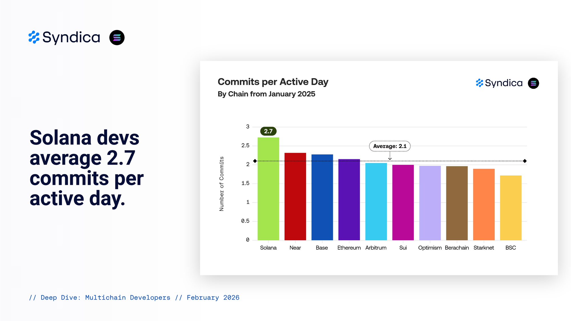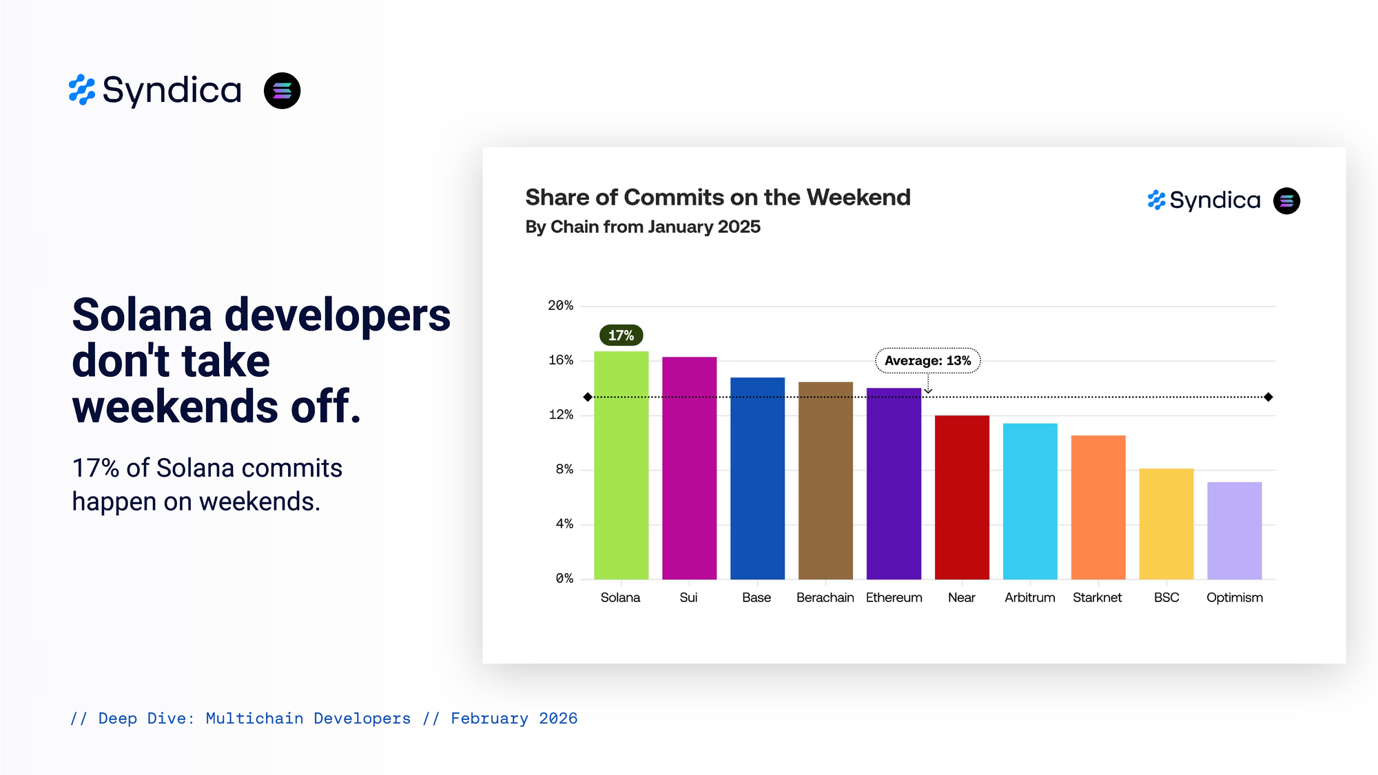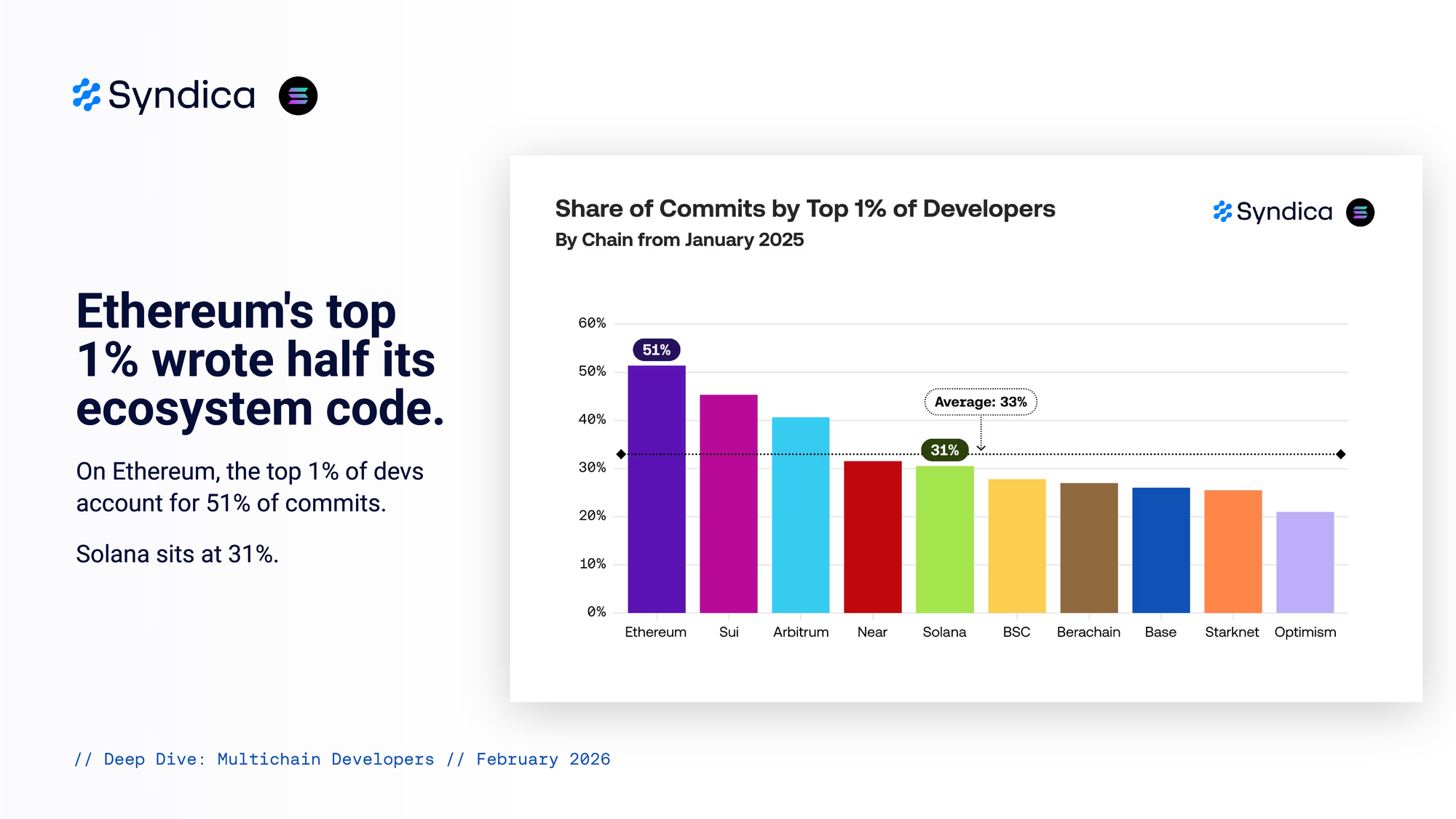 On Ethereum, the top 1% of devs account for 51% of commits. Solana sits at 31%.