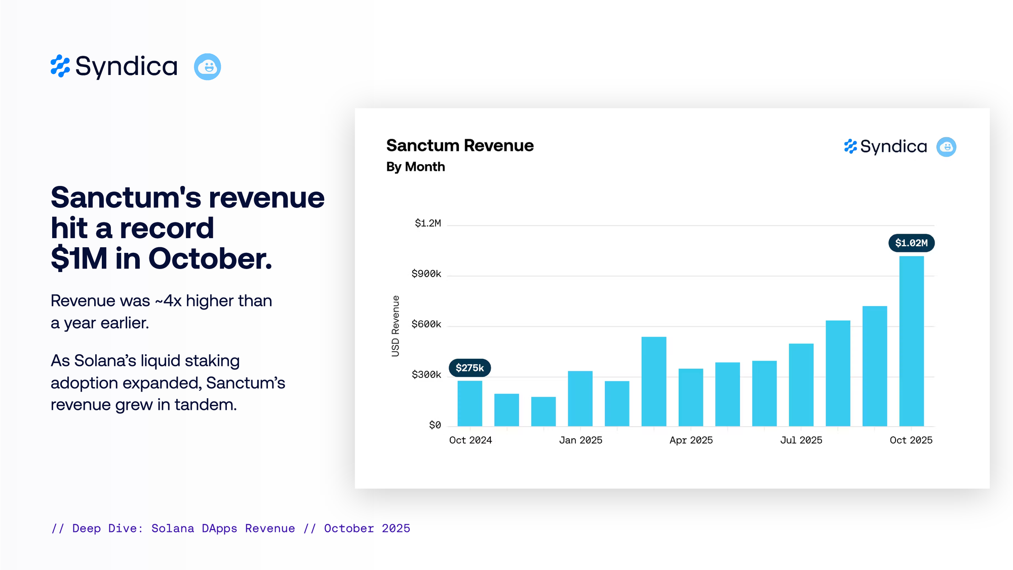 a year earlier. As Solana’s liquid staking adoption expanded, Sanctum’s revenue grew in tandem.
