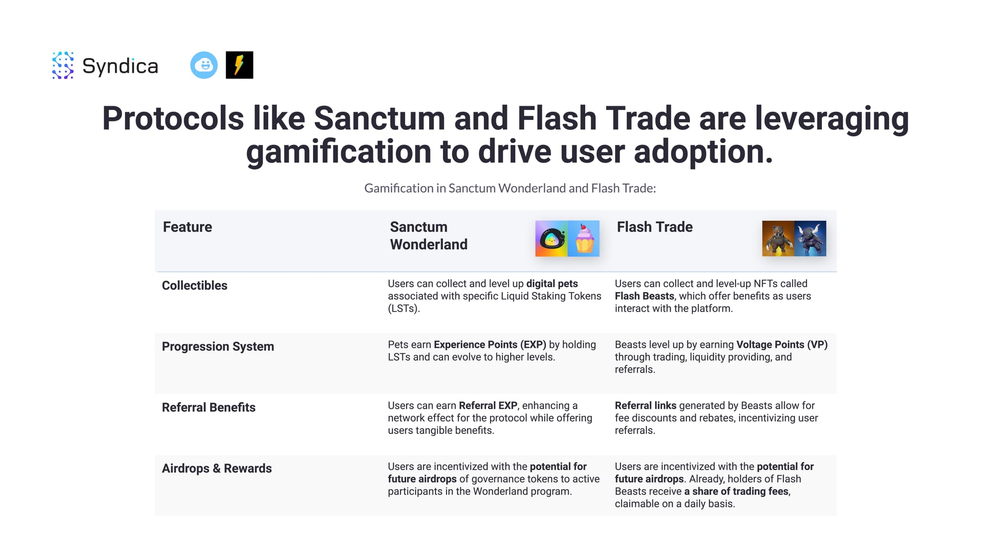 Protocols like Sanctum and Flash Trade are leveraging gamification to drive user adoption.