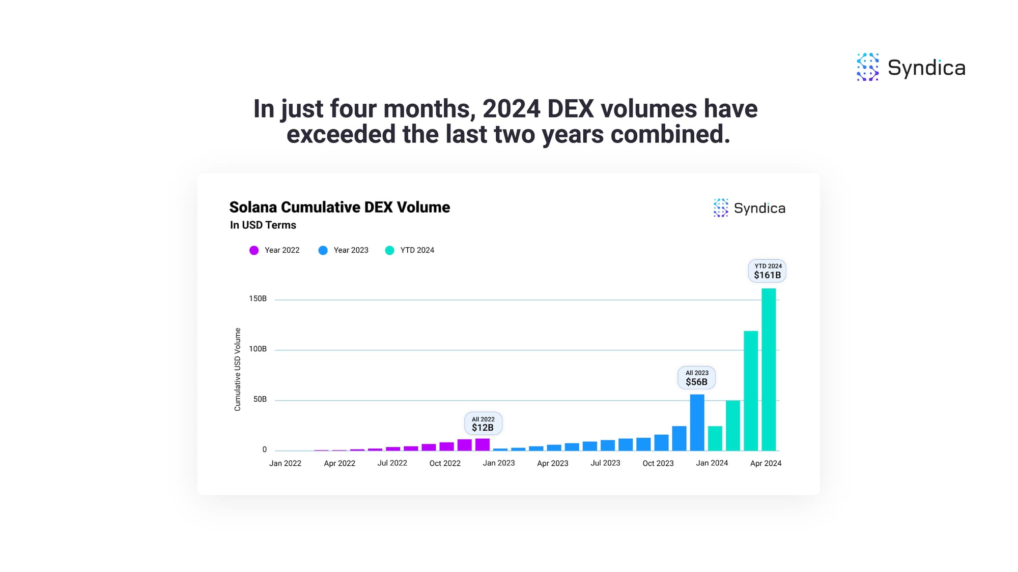 In just four months, 2024 DEX volumes have exceeded the last two years combined.