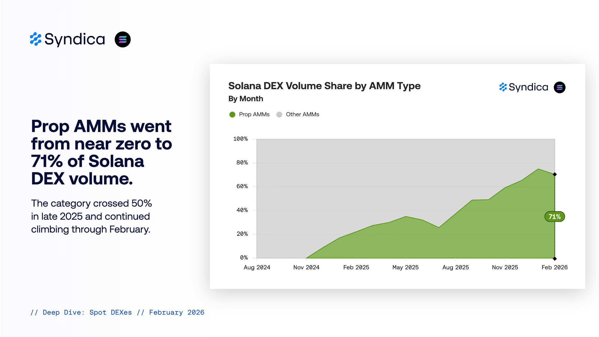 Prop AMMs went from near zero to 71% of Solana DEX volume.