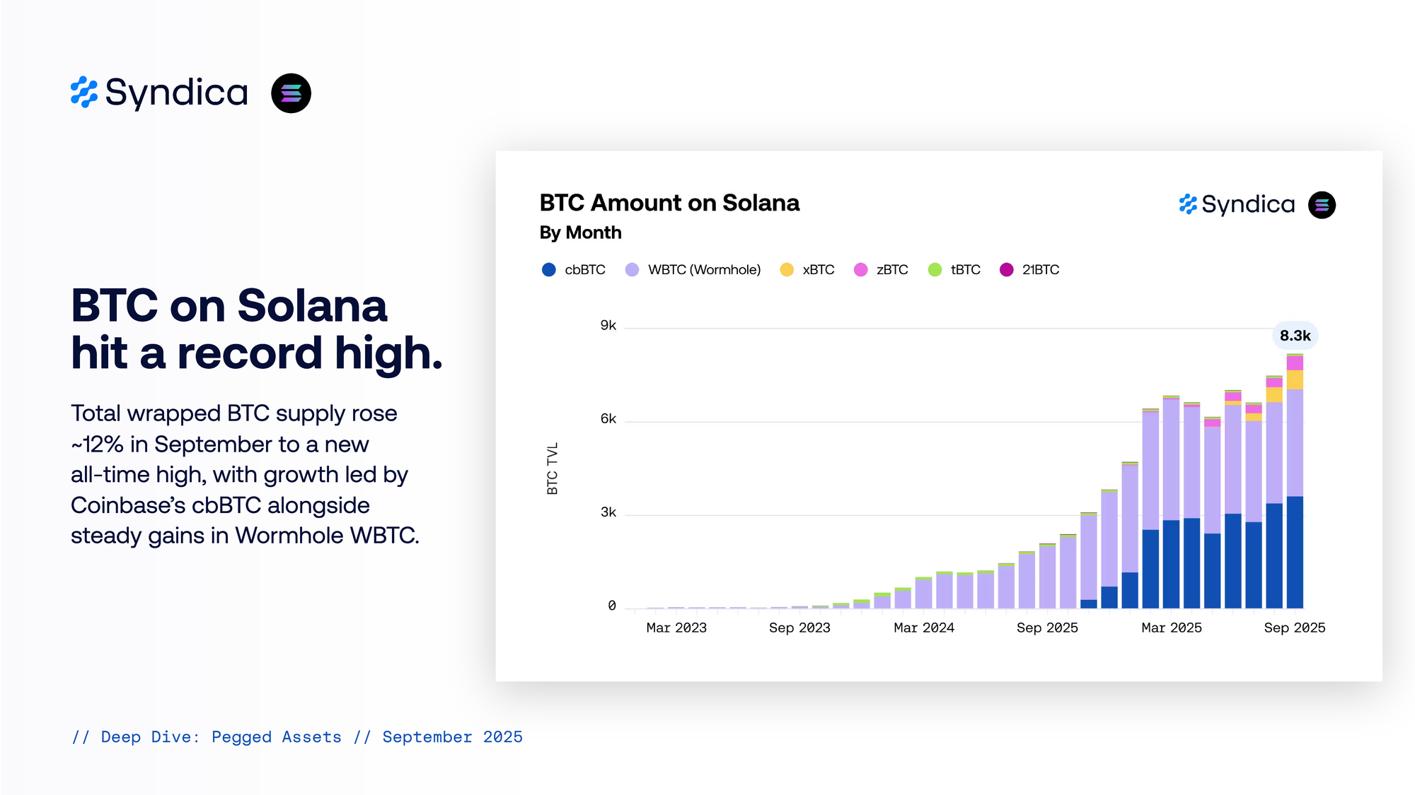 BTC on Solana hit a record high. Total wrapped BTC supply rose ~12% in September to a new all‑time high, with growth led by Coinbase’s cbBTC alongside steady gains in Wormhole WBTC.