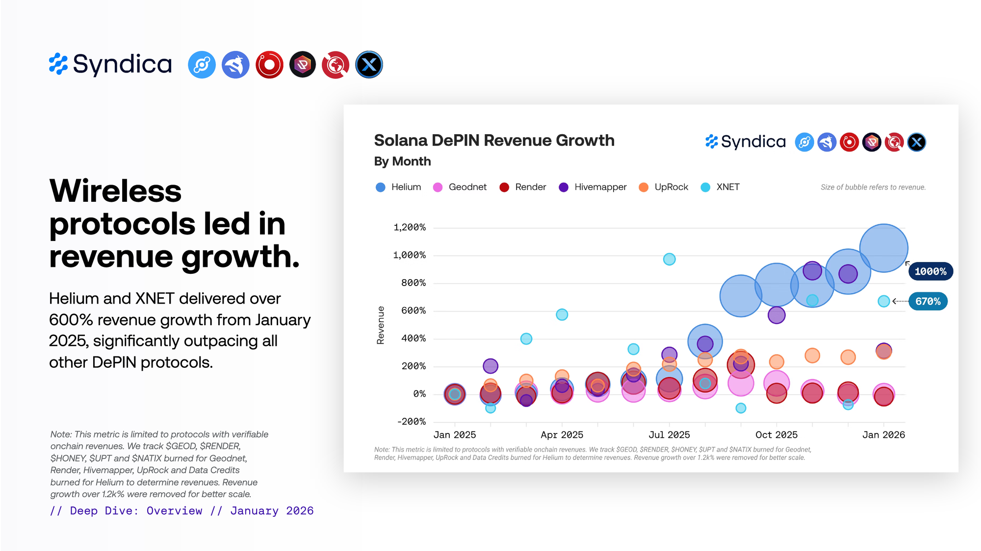 In January 2026, Helium, Render, Hivemapper, UpRock, NATIX, XNET, and Geodnet collectively generated $2.6M, exceeding the previous ATH from September 2025.