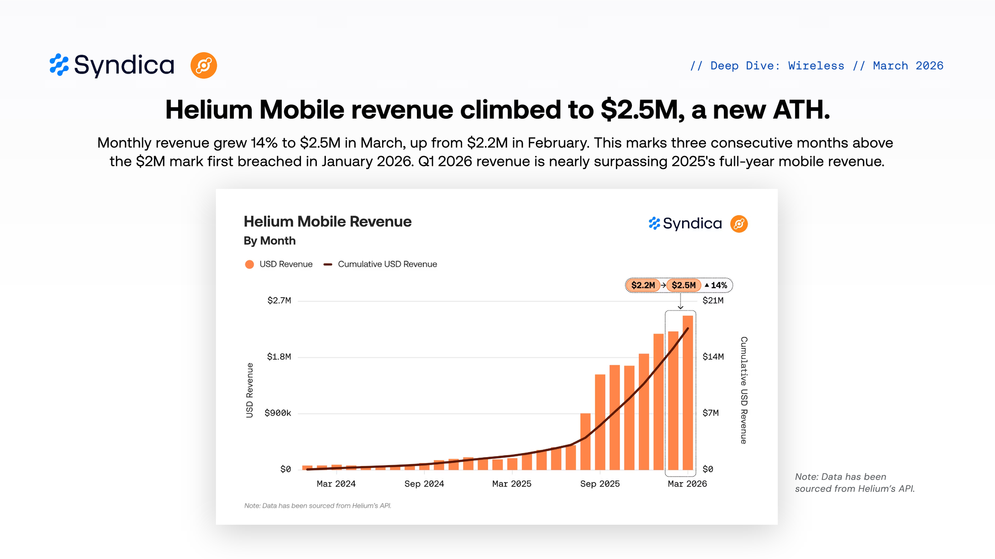 Helium revenue climbed to $2.5M, a new ATH.