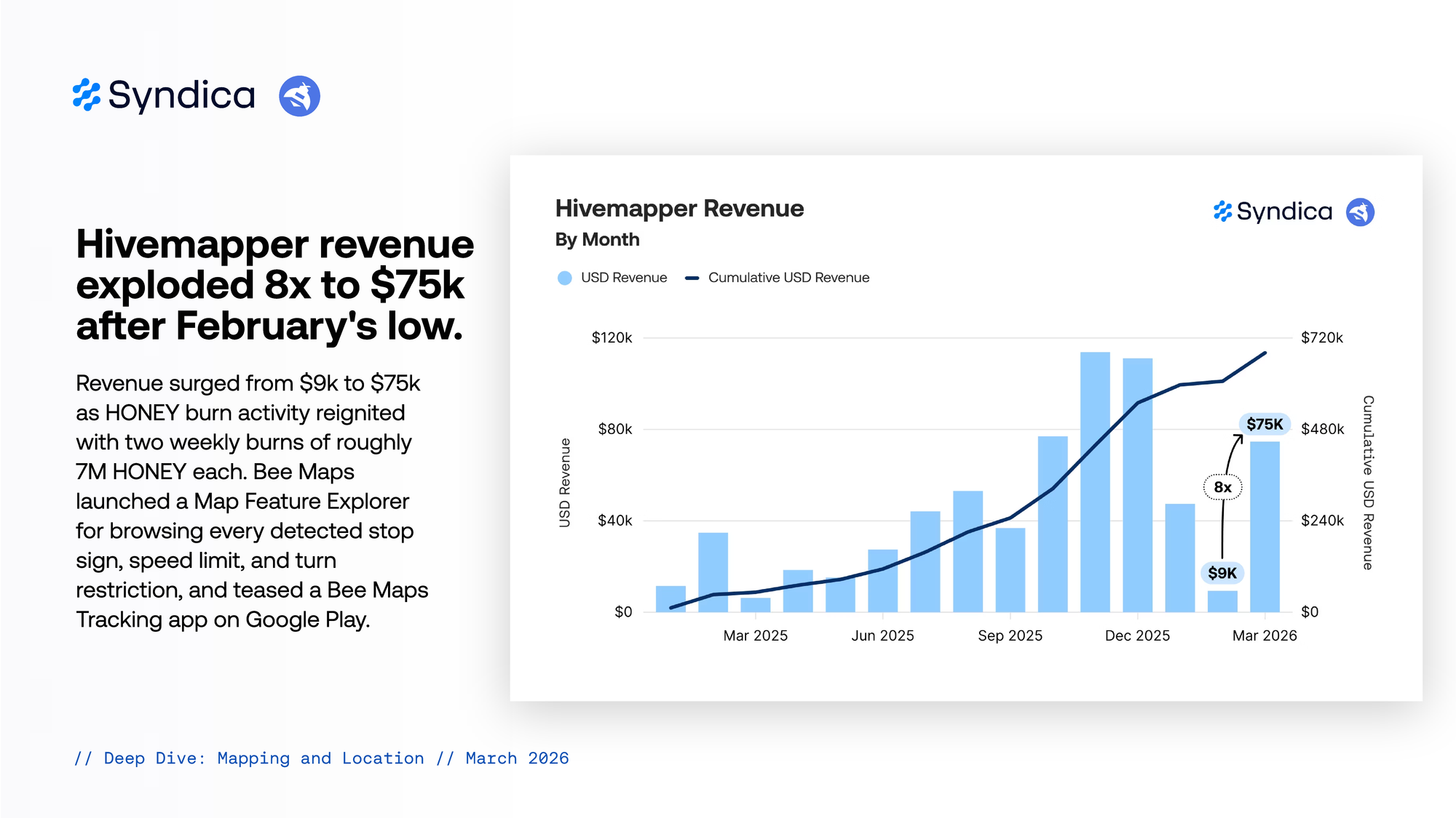 Hivemapper revenue exploded 8x to $75k after February's low.