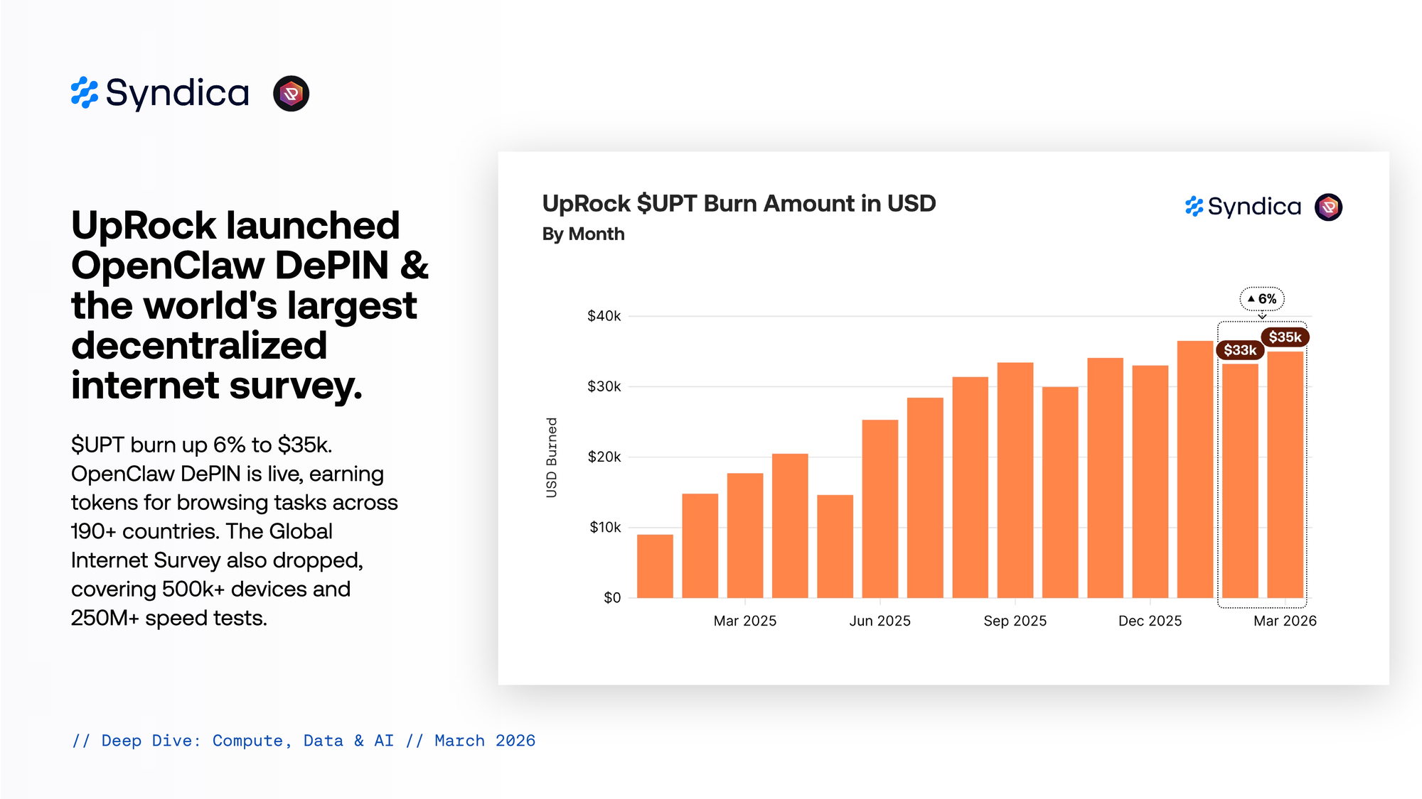 $UPT burn up 6% to $35k. OpenClaw DePIN is live, earning tokens for browsing tasks across 190+ countries. The Global Internet Survey also dropped, covering 500k+ devices and 250M+ speed tests.