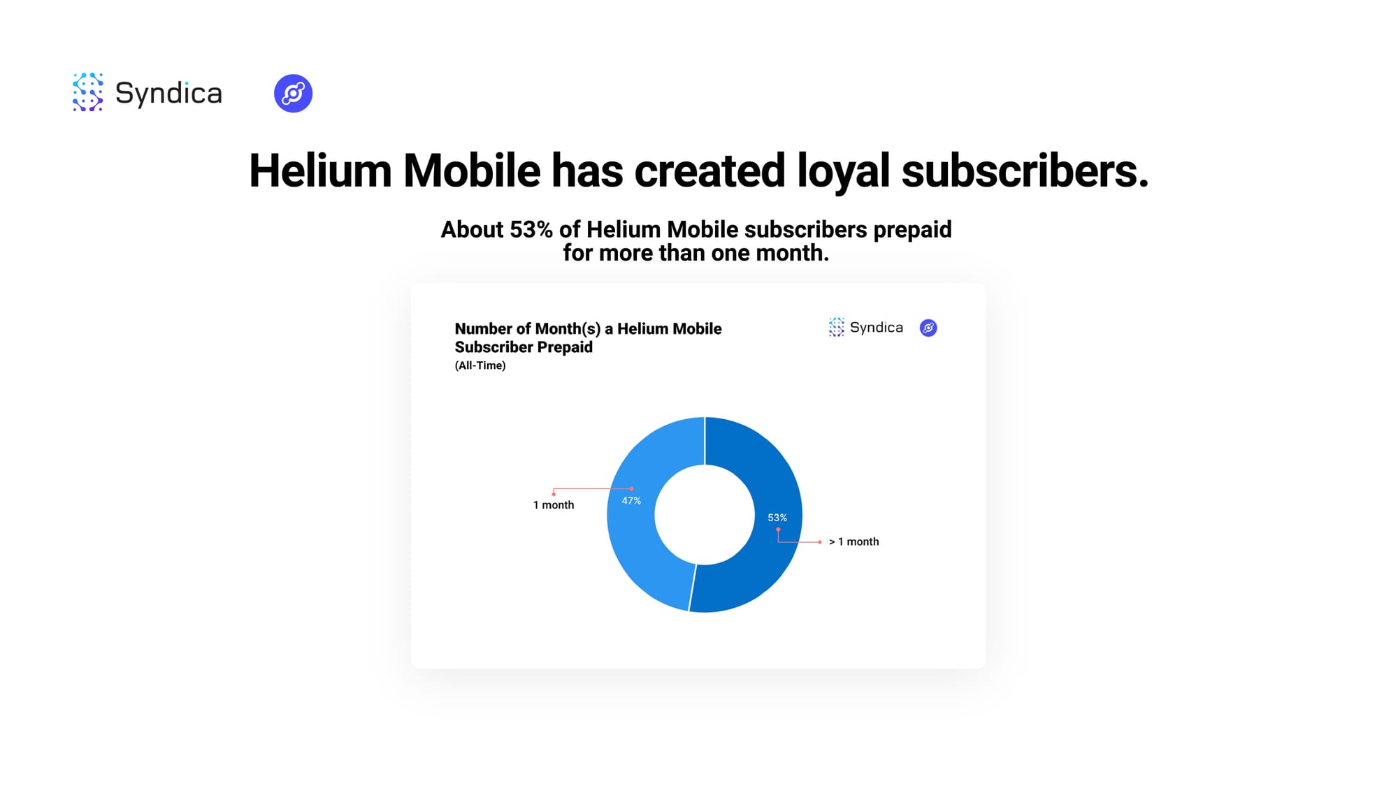 Helium Mobile has created loyal subscribers. About 53% of Helium Mobile subscribers prepaid for more than one month.