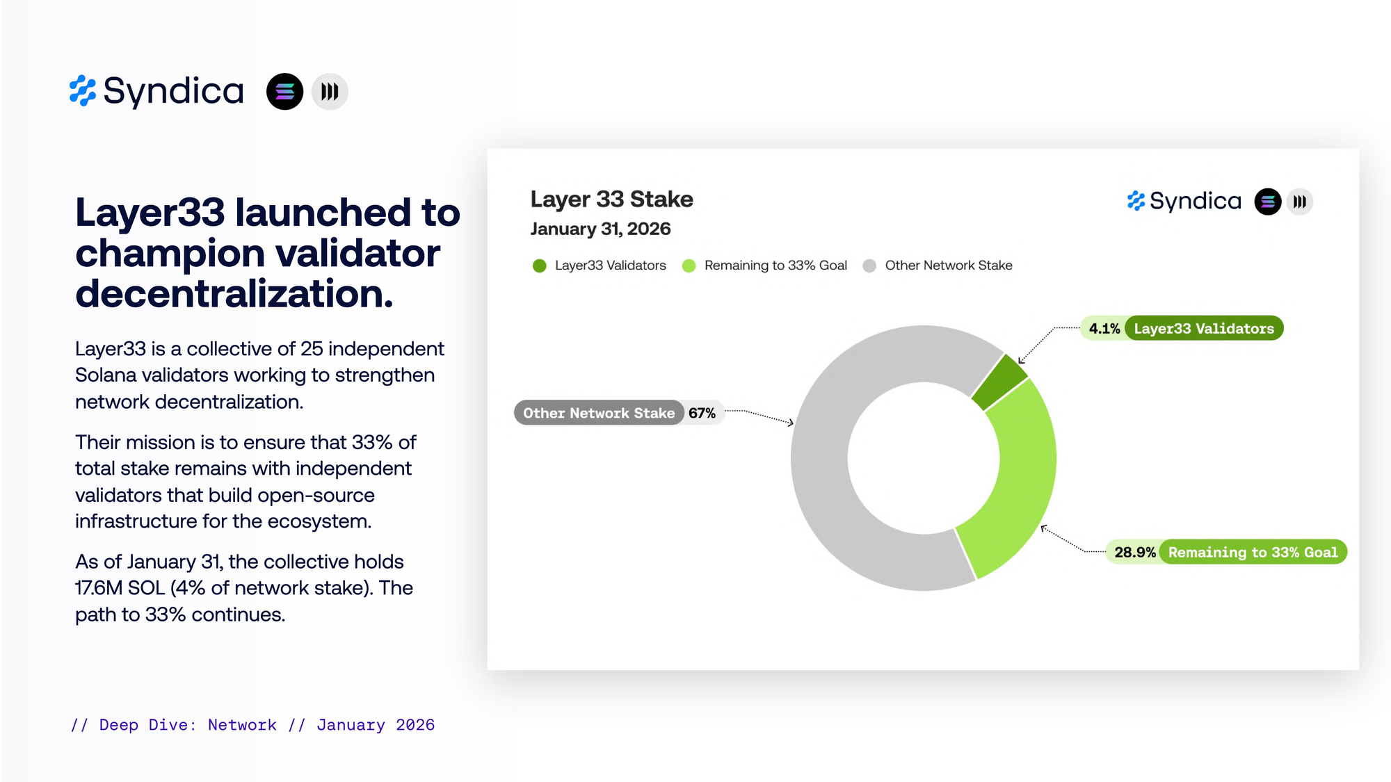 As of January 31, the collective holds 17.6M SOL (4% of network stake). The path to 33% continues.