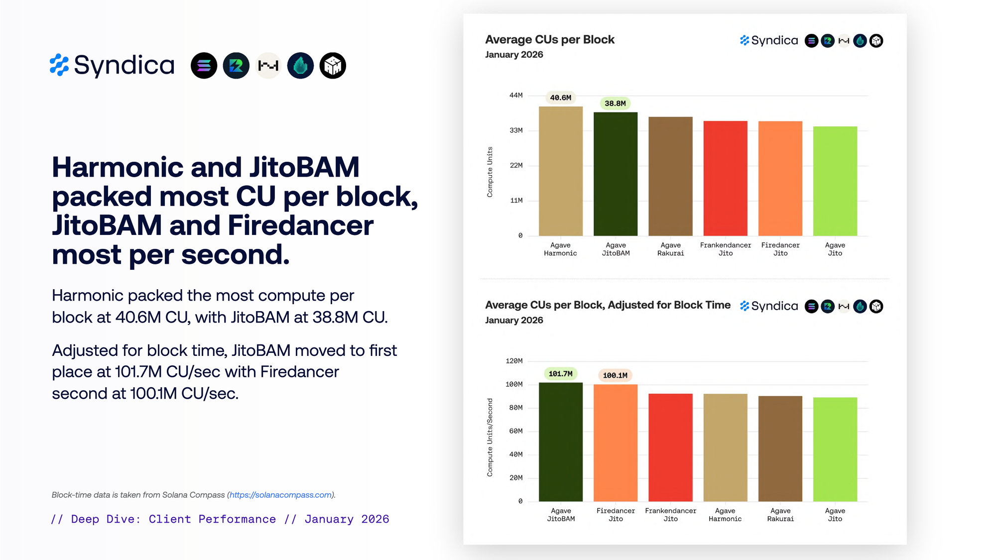 - Firedancer: 100.1M CU/sec