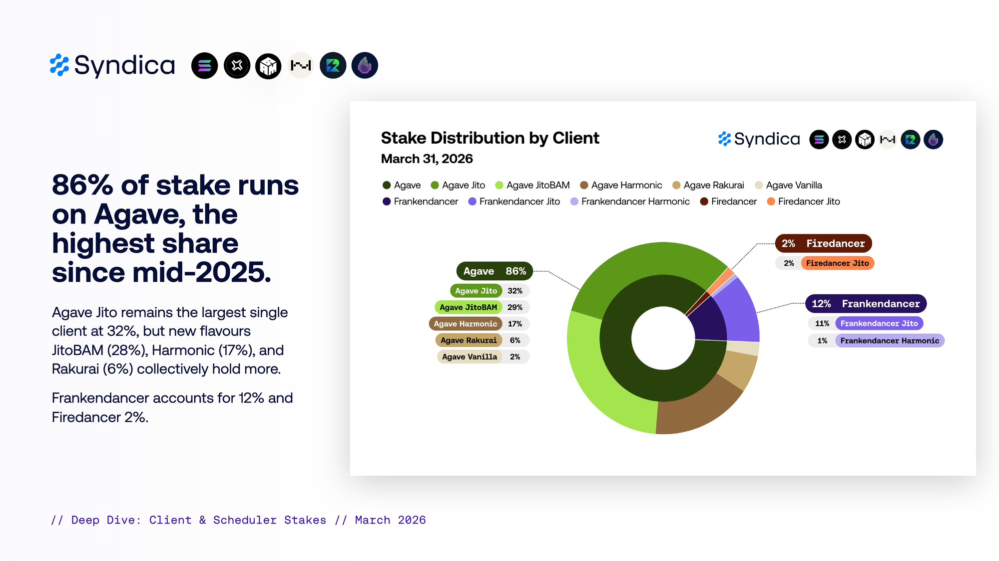 86% of stake runs on Agave, the highest share since mid-2025.
