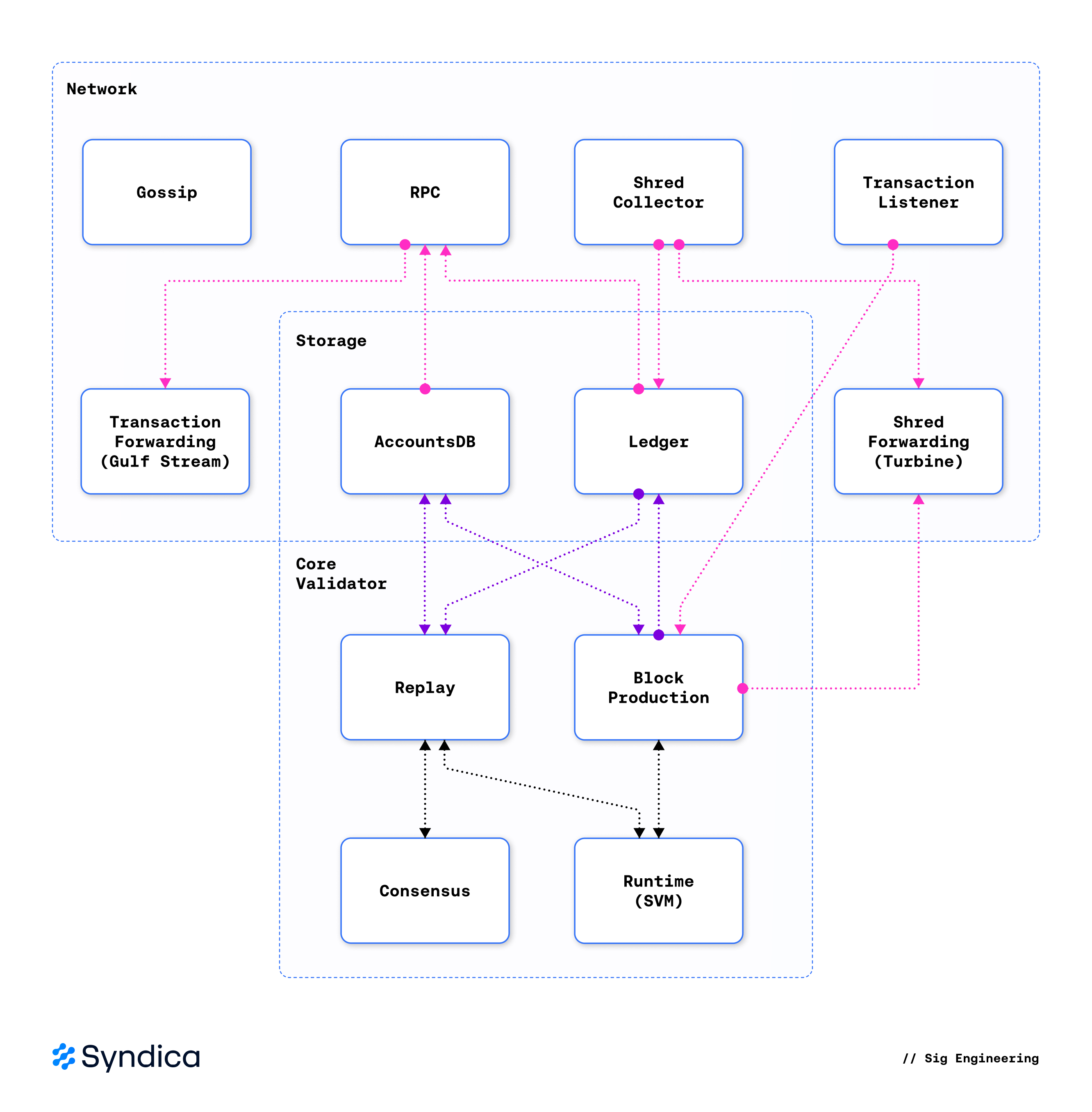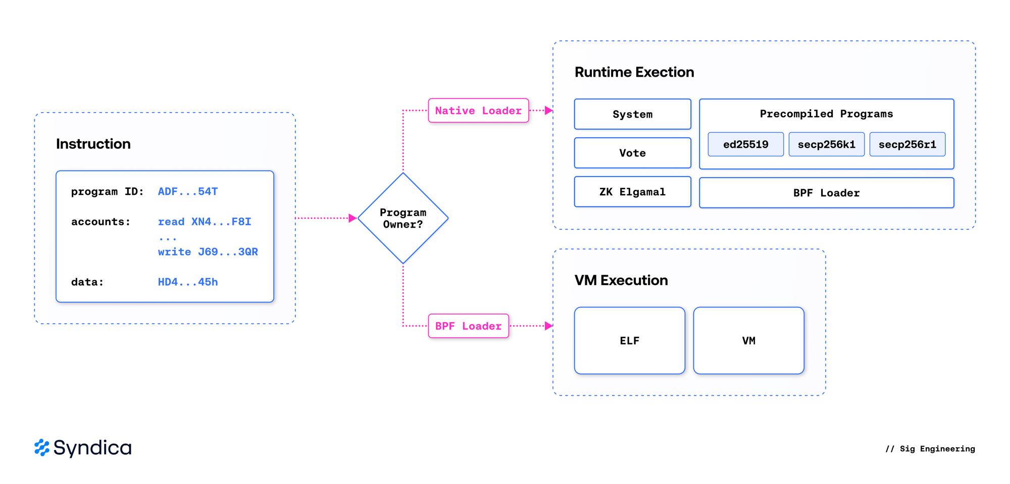 - Instruction Processor: Invokes native programs or interprets sBPF bytecode to execute onchain programs.
